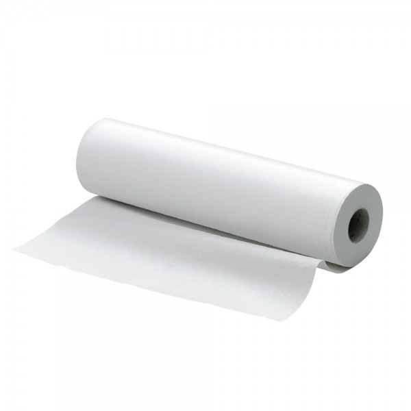 For the treatment and massage tables; 1 layer of skin-friendly cellulose/tissue + 1 layer of waterproof PE (polyethylene), white, roll width 60 cm, 50 m running length, perforated tear-off length every 38 cm; minimum order quantity 1 roll; can also be ordered in a box with 9 rolls (76,95 €)