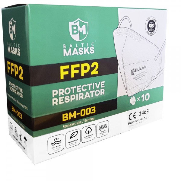 Breathable and soft. Suitable for spectacle wearers - lenses do not fog up. Adjustable nose bridge and elastic ear loop for optimal fit. Protection class masks become for environments with harmful and mutagenic particles in the air. Respirators of this class provide a barrier to at least 95% of particles larger than 0.5 mm and can be used in environments where hazardous substances exceed the OEL by up to a maximum of ten times. CE certified according to standard EN 149: 2001 + A1: 2009 (notified body: 1463). PU = 10 pcs./box, packed in pairs
